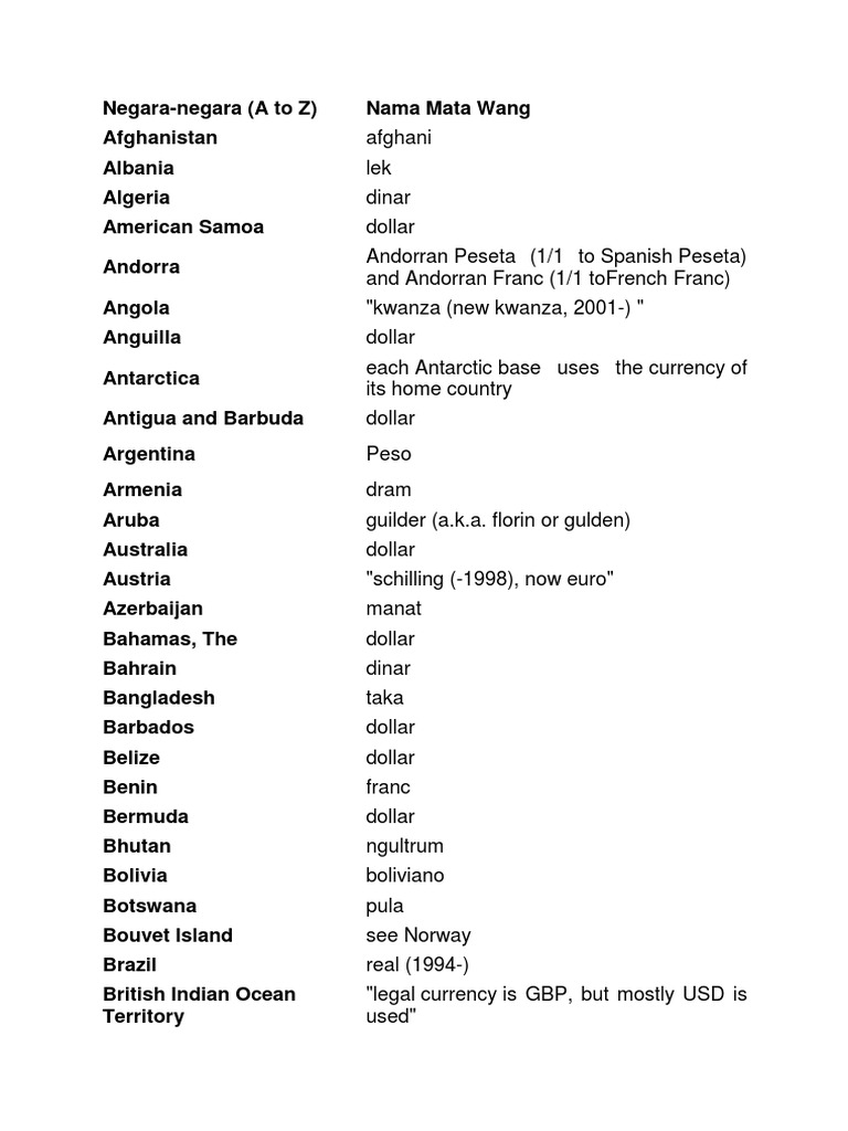 Kode Mata Uang Negara Di Dunia Kode Singkatan
